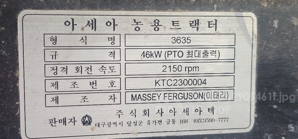 아세아 트랙터 MF-3635 (79마력)