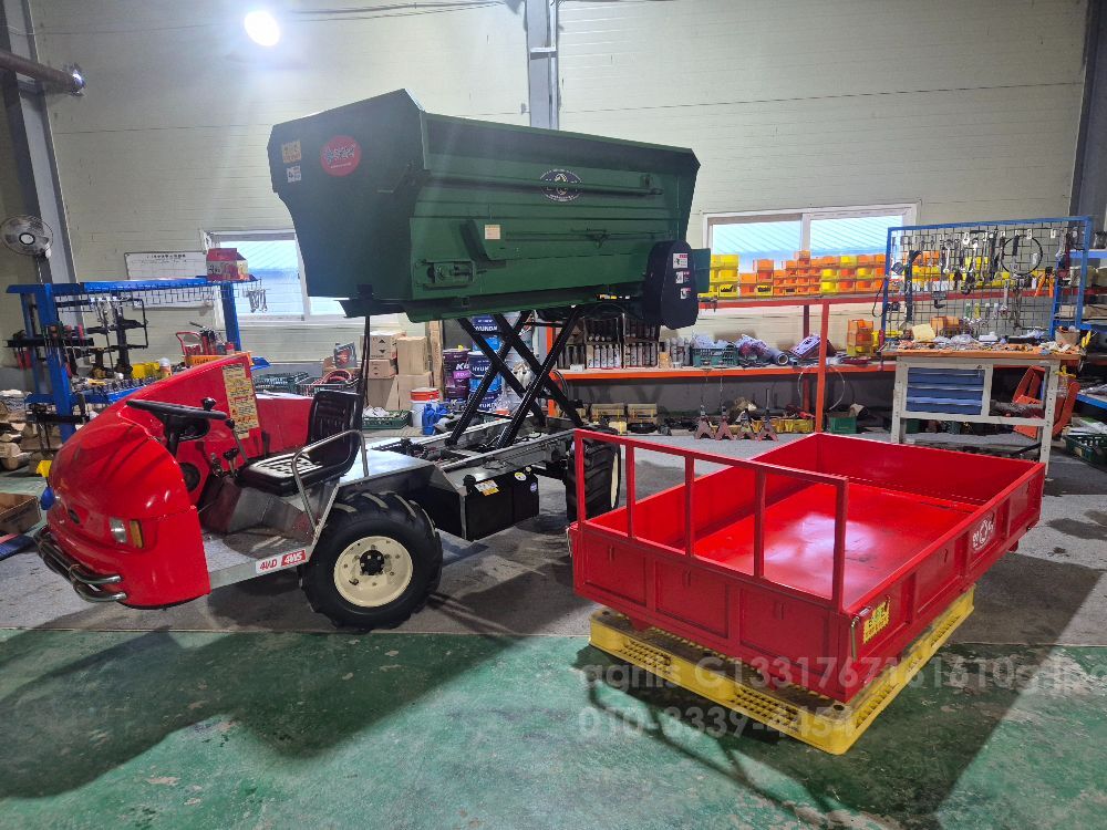 한아1000 리터운반차겸 퇴비살포기입니다. 유압펌프방식으로퇴비살포함니다. 유압펌프 2개장착되어있습니다. 잔고장없이쓰실수있습니다. 2륜4륜조향ㅡ덤프ㅡ리프트까장장착되어있습니다.사소한 부품들 신품으로 교환하였습니다. 사용하시는 용도에 잘 맞으신지신중히생각하시고 직접 오셔서 시운전하시는걸권해드립니다. 전국화물배송가능합니다. 편하시게 전화문의부탁드립니다 좋은 하루 보내세요.