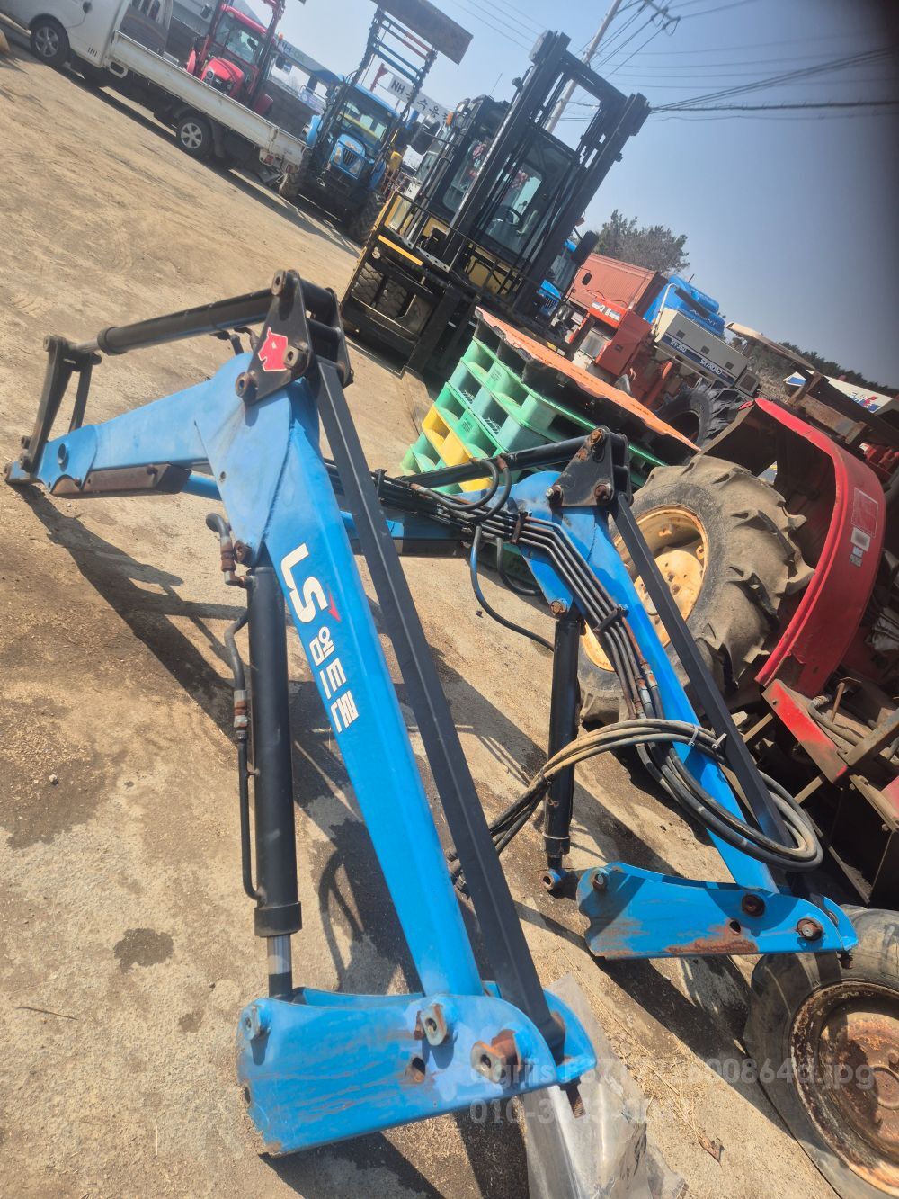 대동 es500v 중고로 샀습니다. 로더는 웅진기계에서 제작한거구요로더 사이를 연결하는 원형 관 안에 지게발? 같은게 두개 . . .