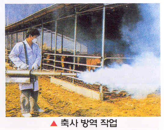 - 축사,계사,돈사등에서 모기,파리등의 해충구제 소독작업.