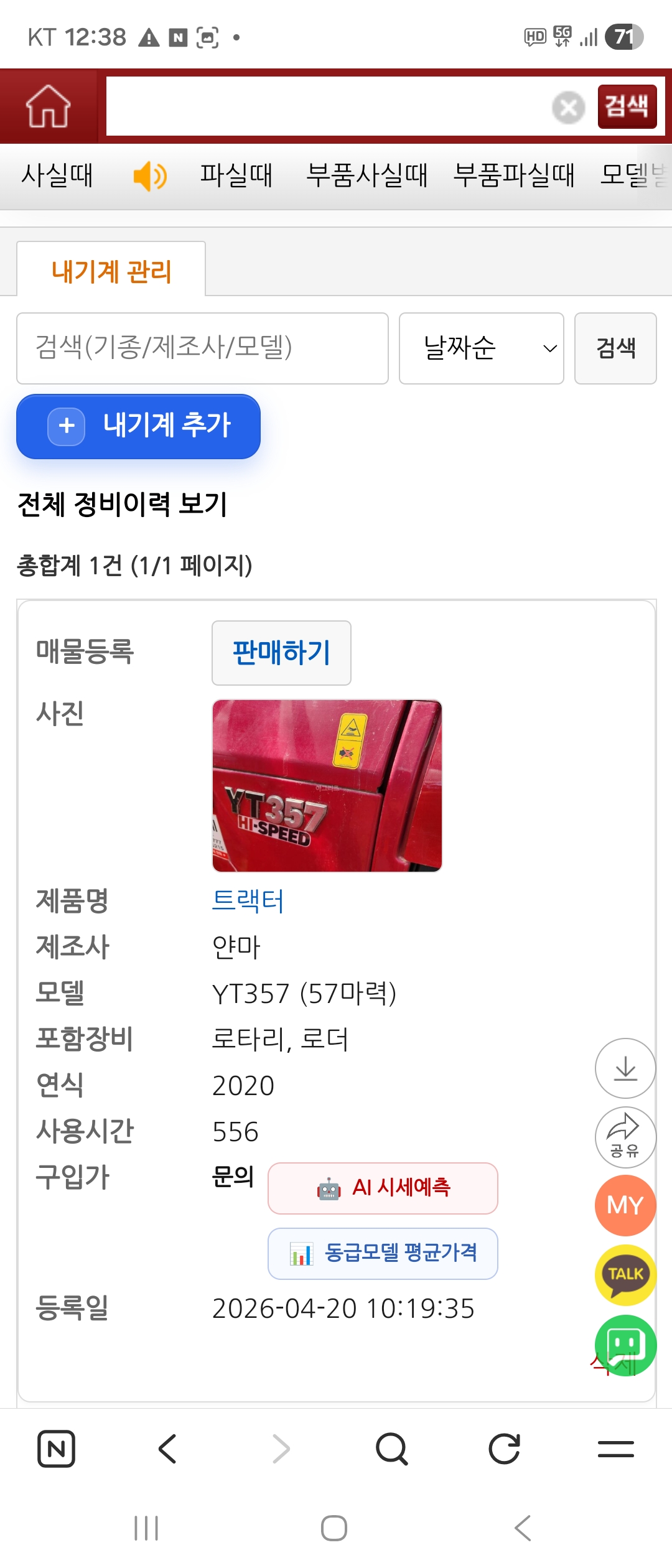 내기계 AI 가격예측 및 평균가격 서비스 제공